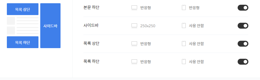6. 수익 탭에서 원하는 광고 ON / OFF 설정