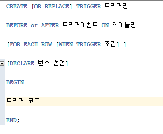 - [DECLARE 변수 선언] : 트리거 내에서 사용할 변수를 선언