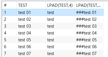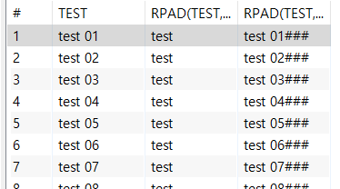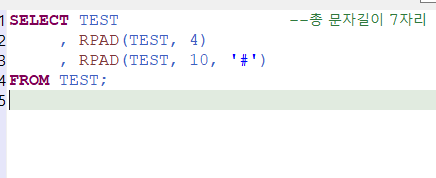 RPAD("컬럼명", "총 문자길이", "채움문자")