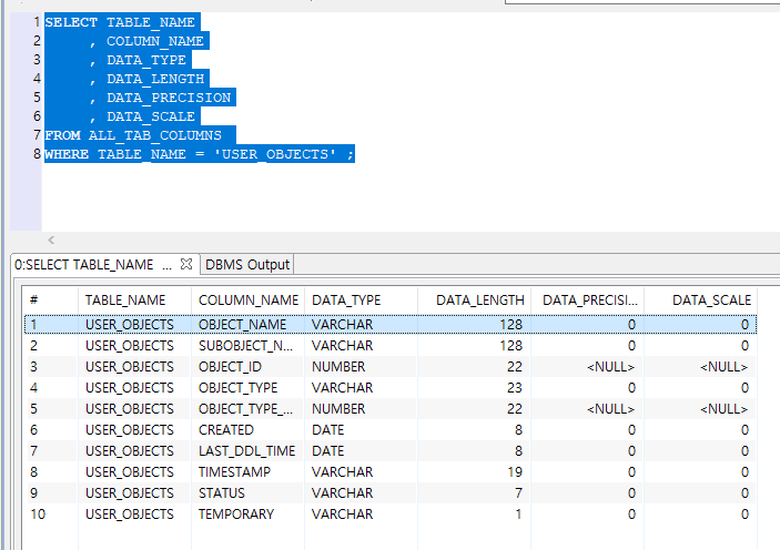 계정에 접속 후, DB에 존재하는 OBJECT들의 정보를 관리하는 테이블 - USER_OBJECTS