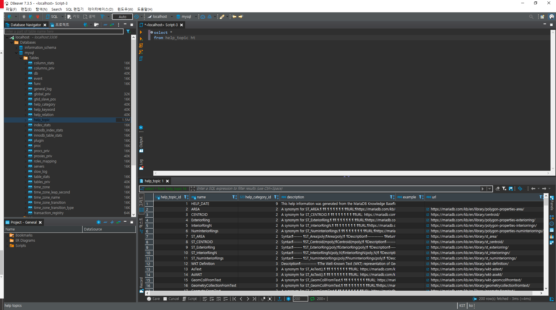 7. 연결된 마리아 DB의 Databases -> mysql -> SQL편집기 -> SQL편집기