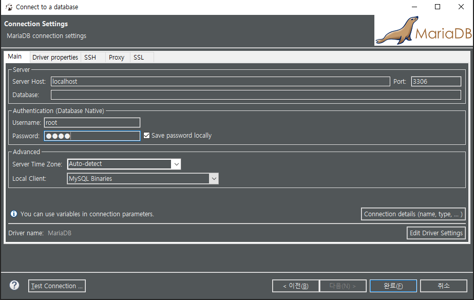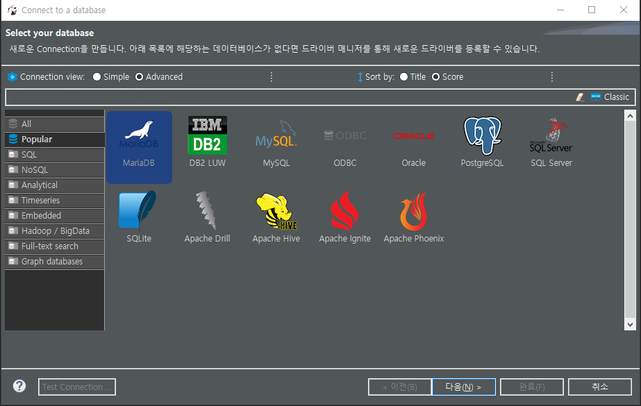 6. 원하는 DB 선택 후 해당 DB 정보 입력하기