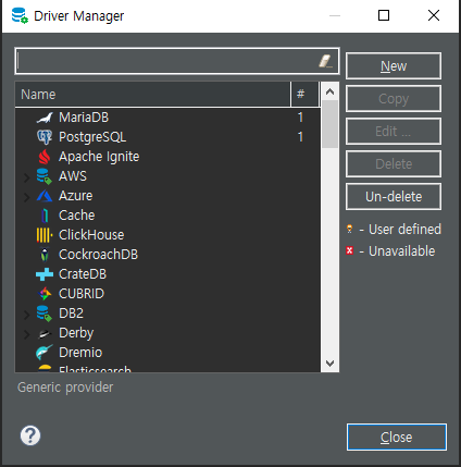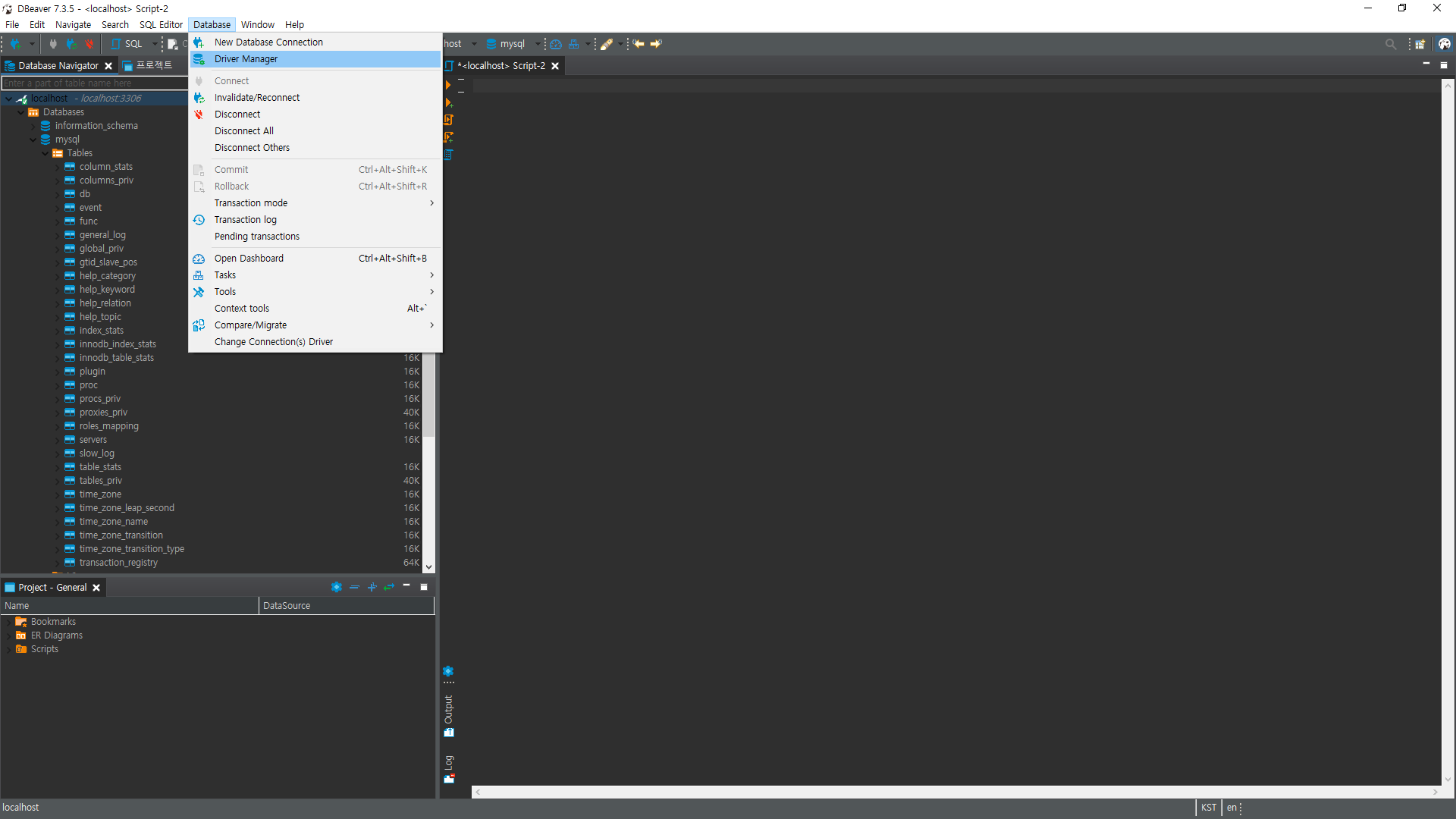 1. Database -> Driver Manager 클릭