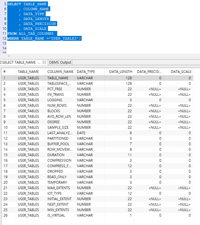 | [Oracle] ALL_TABLES, USER_TABLES, TAB 전체 테이블 조회 Example (0) | 2019.08.25 |