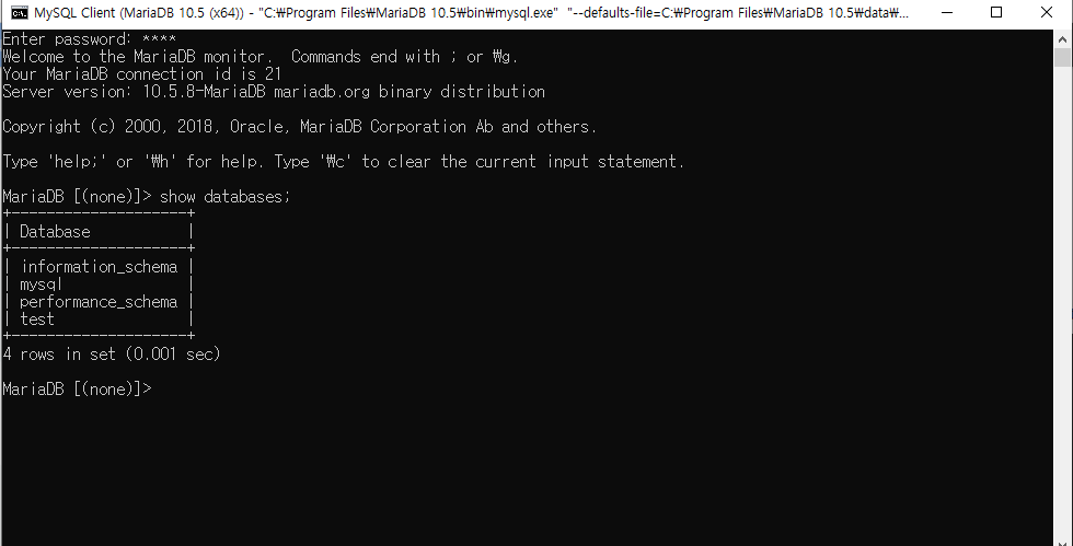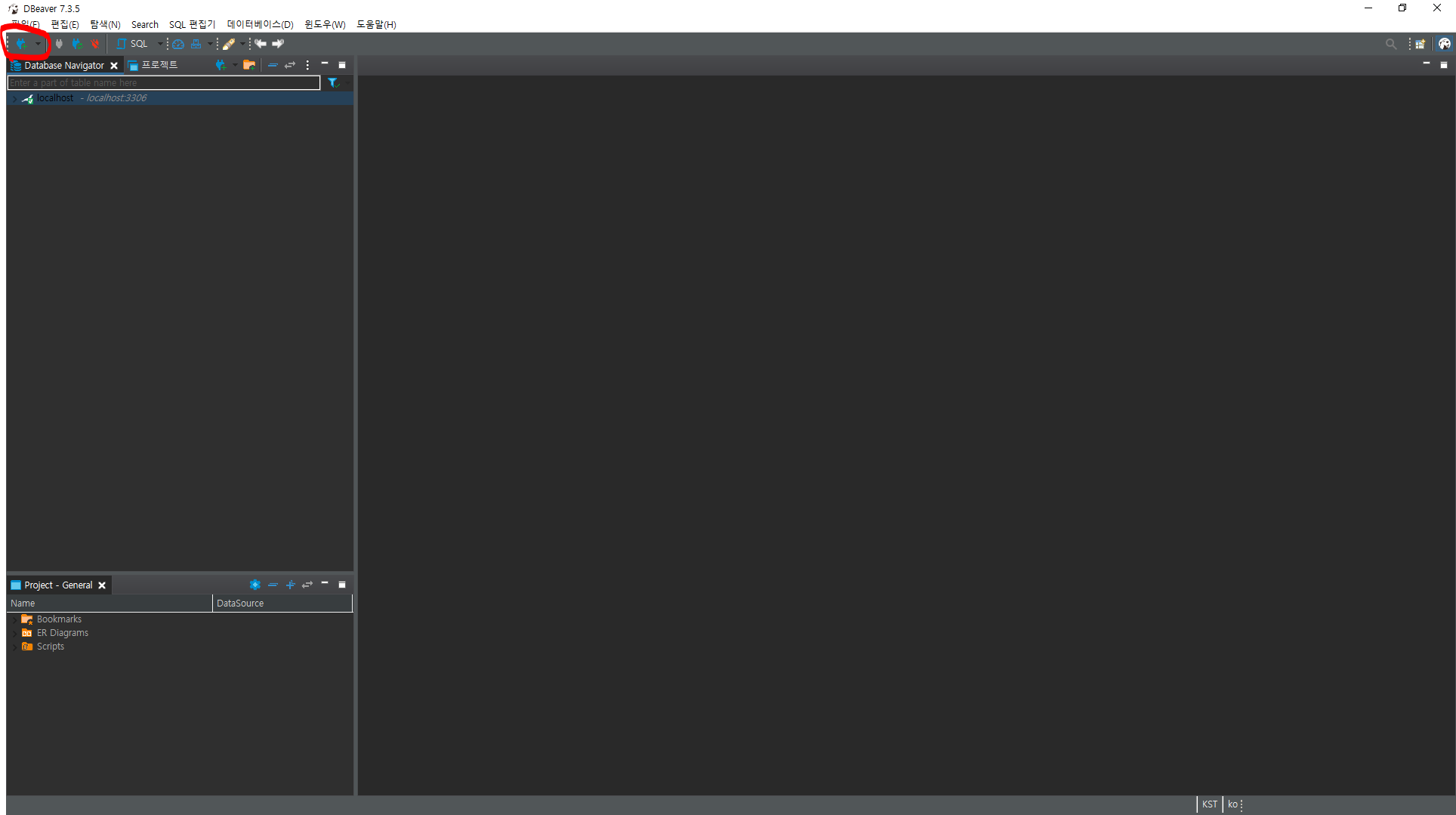 7. 연결된 마리아 DB의 Databases -> mysql -> SQL편집기 -> SQL편집기