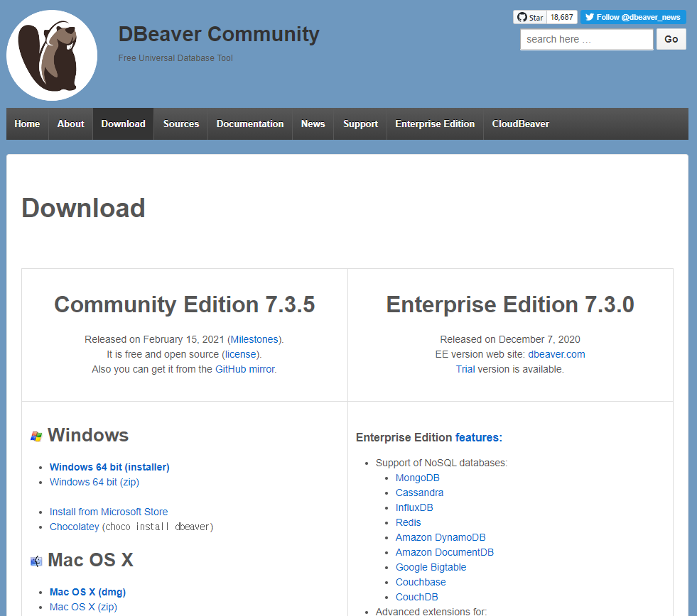 1. dbeaver.io/download/ 디비버 홈페이지 들어가기