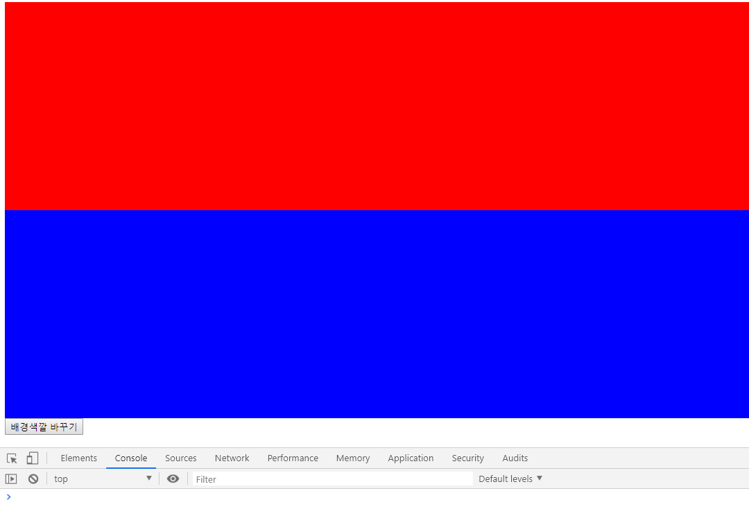 버튼 누르기전 div 배경색깔을 빨강색 파랑색으로 설정함