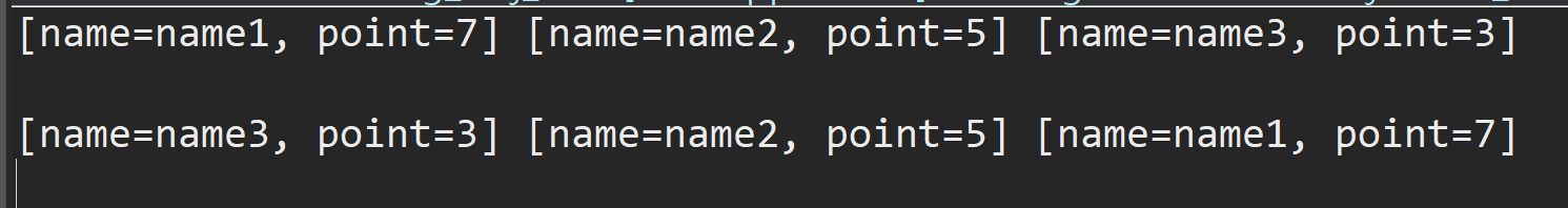 두번째 Console Result : Point 변수 기준 내림차순 정렬 결과